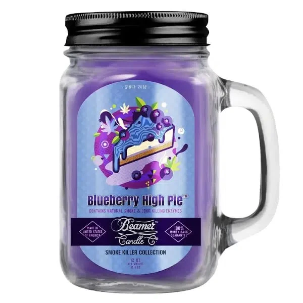 A classic, delicious smelling scent from Beamer Smoke Contains odor-killing enzymes that absorb and eliminate household odors 12oz candle with a 90-hour burn time Soy blend wax with a lead-free wick Comes in a reusable glass mason jar with metal lid