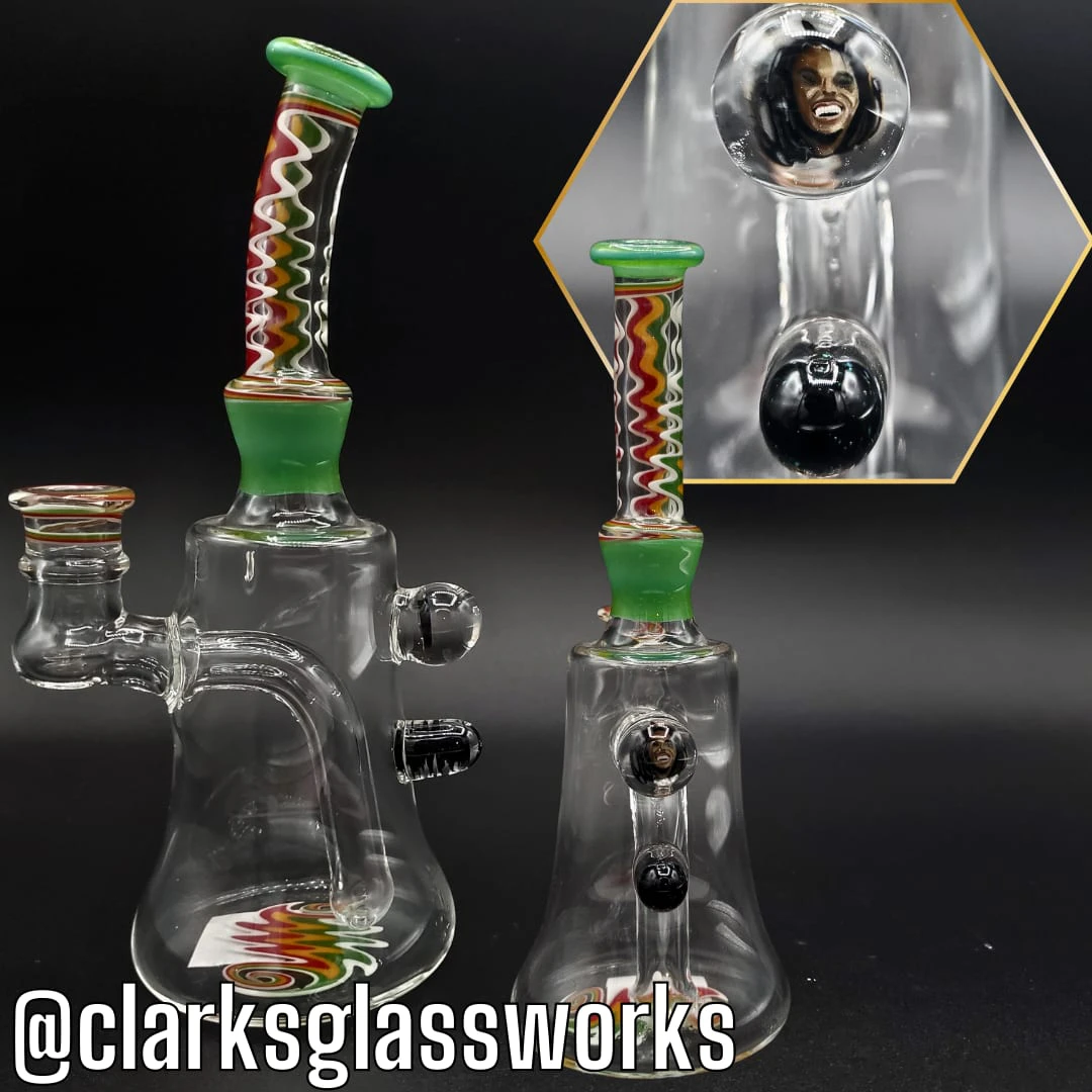 Clark's Glassworks - Rasta Wigwag w/ Crushed Opal Nub & Bob Marley Millie
