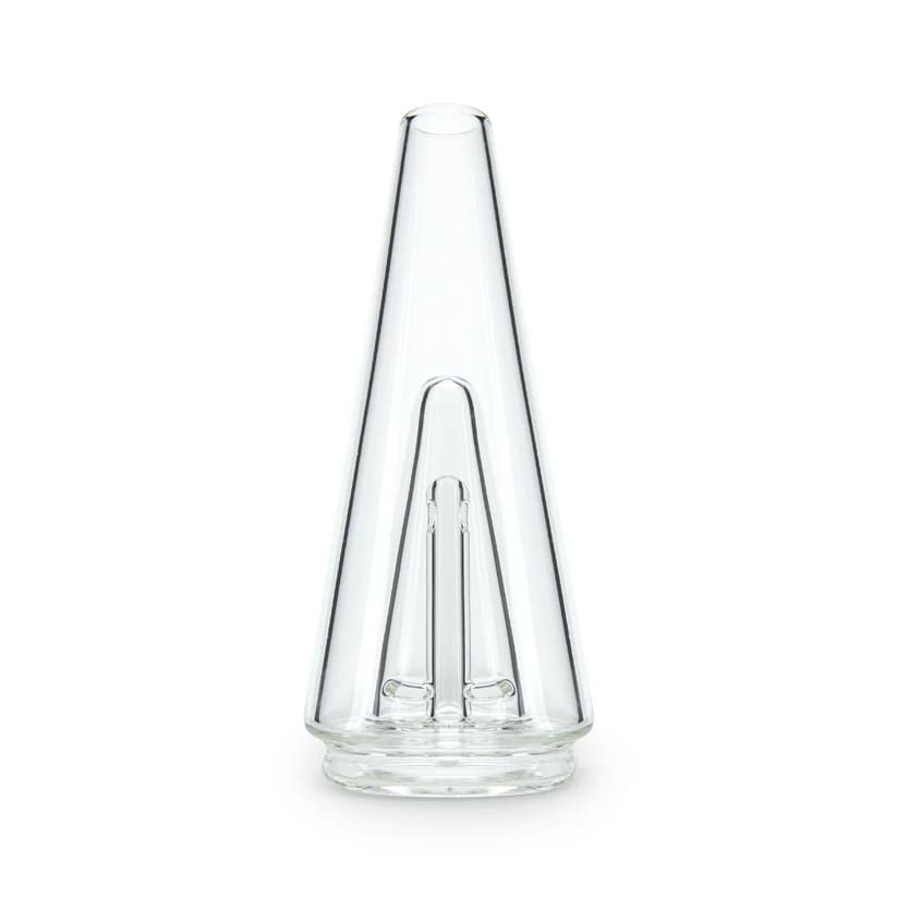 The Puffco Peak glass attachment is a hand-blown borosilicate work of art. The glass has percolation water filtration, for a smooth hit each time. Minimalist styling and a blasted inner cone complement the Peak design perfectly. The attachment also easily snaps in and out of the base, to make storage and cleaning simple.
