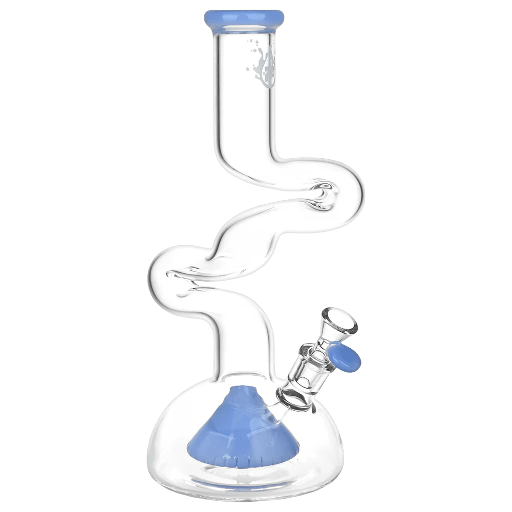 Take the road less traveled when you pack a bowl in the Pulsar Path Of Enlightenment Bong. This whimsical water pipe is crafted from durable borosilicate glass with an extra wide dome-shaped chamber for stability. The stemless connection flows through directly to the cone percolator, which is lined with vertical slits for high airflow and efficient water filtration. As you inhale, smoke meanders up the winding zig zag neck; this elongated shape allows more time for smoke to cool and prevents any splashback from the chamber. Each bong includes a 14mm male herb slide with a matching tab handle.