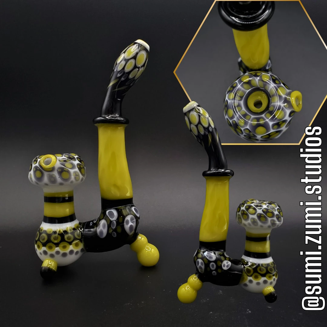 Sumi Zumi Glass - Dry Pipes - Black / White / Chartreuse Standing Sherlock